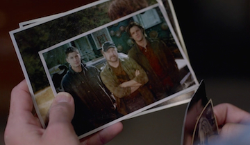 Sam looks through the Winchester Family photos, including one of the boys with Bobby Singer