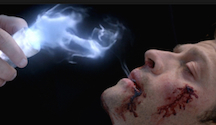 Outside Levi’s Lil’ Gas and Grocery, Crowley is standing over Castiel as he struggles to consciousness. Adina is beating up Hannah, but then Crowley is right behind her. Crowley takes Adina’s grace and kills her, saying, “Why can’t you people just sit in clouds and play harps, like you’re supposed to?” Luckily Crowley carries a little glass grace container with a skull on top for such occasions. We definitely want one of those for Christmas, and if it happens to have grace in it, all the better. Crowley gives the grace to Cas!