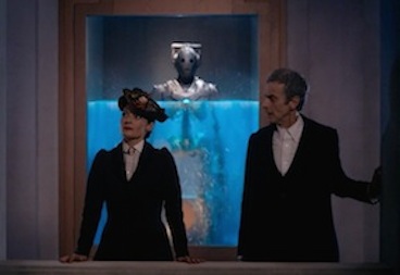 Missy faces Dr. Chang and the Doctor. It turns out that Missy told a “teensy, little fibette” because she is actually Dr. Chang’s boss. She tortures Dr. Chang for a bit before murdering him, forcing him to say something nice about her. In this scene, Missy’s true nature starts to become apparent. As the water leaves the tanks, we see that the dark water, which obscures non-organic material, has been hiding the fact that the skeletons are Cybermen. We haven’t seen the Cybermen since Handles in “The Time of the Doctor,” but haven’t seen the Cybermen in full evil force since “Nightmare in Silver.” We love a Doctor Who classic.