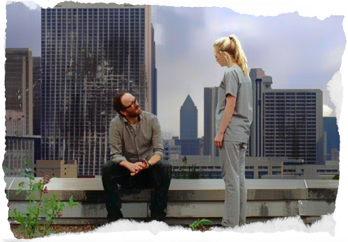 He then takes her up to a roof to look at the destroyed city. He tells her about the challenges they faced when the city first fell. There were lots of people they couldn’t help, but Dr. Ed finally convinced Dawn to allow him to help people. In return, those saved would give back for the resources used. Dr. Ed also explains that Dawn’s boss at that time, Hanson, apparently cracked. Dawn handled the situation and kept everyone alive. At least that’s what Dr. Ed is telling Beth. This could the truest interpretation of events. Dr. Ed says, “As bad as it gets, it’s still better than down there.” Beth seems to accept the explanation about his motivation to stay at the hospital..