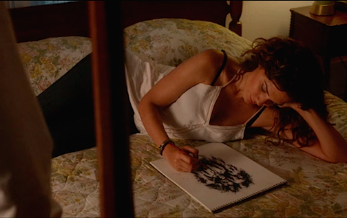 Zed, the woman who’s been frantically drawing and painting pictures of Constantine with no understanding of why, or who he even is, literally runs into John on the street. Throughout the episode, John tries to ditch her and she keeps popping back up—she’s not about to let the guy from her drawings get away before she can understand why he’s in her head. She does, however, make herself useful. Although she says she has no control over her visions, which seem to come to her most readily by touching people or objects, Constantine can get the information he needs by guiding her via hypnotic suggestion. She’s also shown to have grifter skills—while Constantine distracts her in order to slip away, she’s in turn lifted his wallet, and later, comes and goes at will from his small-town hotel honeymoon suite.
