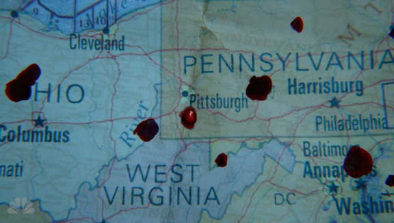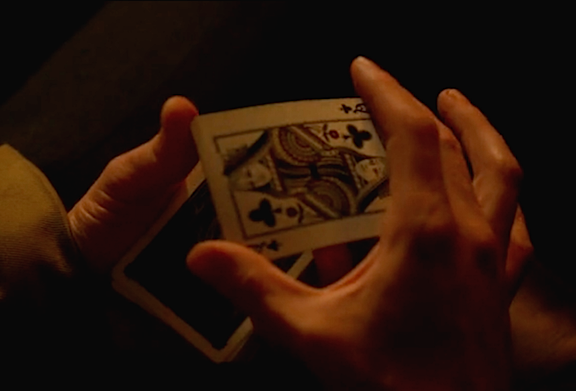 We next see John in Jasper’s cottage, a lit smoke in the ashtray. He’s practicing close playing-card magic when Chas comes in with an envelope full of horse-betting winnings, cardswhich we guess is how they’re supporting themselves this week. We see Heddwich, PA on the blood map, and Chas reminds Constantine that he can’t come with him—something about a succubus, and the law having a long memory when it comes to train derailments. Of course the real reason Chas has to stay behind is that we need room to get to know a new character.