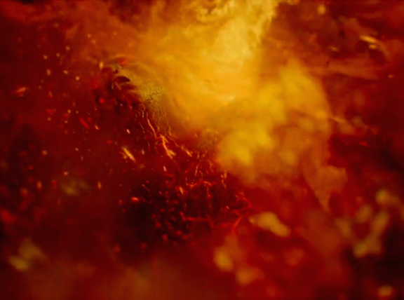 The episode opens with a surly miner having his usual slug of after-work whiskey and intimidating his beleaguered wife before getting in the shower—where the water turns into muddy oil, then flames, igniting the aforementioned bathroom barbecue. Then the new opening titles come on, and they are hella creepy. Scorched bodies writhe in the agony of hellfire. Ouch!