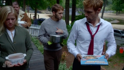 The smoking thing is almost funny now, too—the writers are clearly doing everything they can to make it clear that John’s a smoker while never actually showing him in the act. We see him smoking from behind, so we can’t see his face; we see lit cigarettes in ashtrays in front of him, we see Chas crush them out and make griping comments about John’s filthy habit; and of course we see the Zippo-flicking. We’re not sure if this is going to end up being more distracting than had he not smoked at all, but we’re going to try to enjoy watching the writers somehow sneak the verboten vice into each episode.