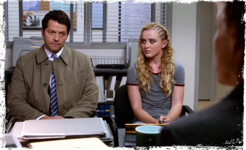 Claire helps Castiel to put his tie on correctly, telling him, “Now you look like a dad,” in what almost seems like a touching daughter-father scene, if you are able to forget that Claire’s current life is a consequence of Castiel’s decision to take Jimmy Novak as a vessel. When the social worker questions why he wants to come back into Claire’s life now, he has no good response except to say work took him away. When asked to explain the work that demanded such an extended absence Castiel replies, after some thought, “I fight certain deadly threats to humanity,” and Claire quickly adds, “He’s an exterminator.” Despite Claire’s belief that the social worker has to allow her father to sign her out, the social worker denies Castiel’s application, telling him, “Claire’s troubled. The last few years have not been easy for her. And she doesn’t need a friend. She needs a father.” There is a lot of parenting advice, or perhaps warnings, in this episode.