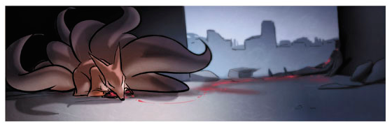 One of the main characters in the webcomic The Fox Sister is a nine-tailed fox. This fox is a Korean kumiho, rather than a Japanese kitsune. The webcomic is rooted the Korean fairy tale of the same name. Unlike the kitsune, which can be of a benevolent character, the flesh-eating kumiho are characterized as evil. Nonetheless, it’s an fantastic depiction of a nine-tailed fox.
