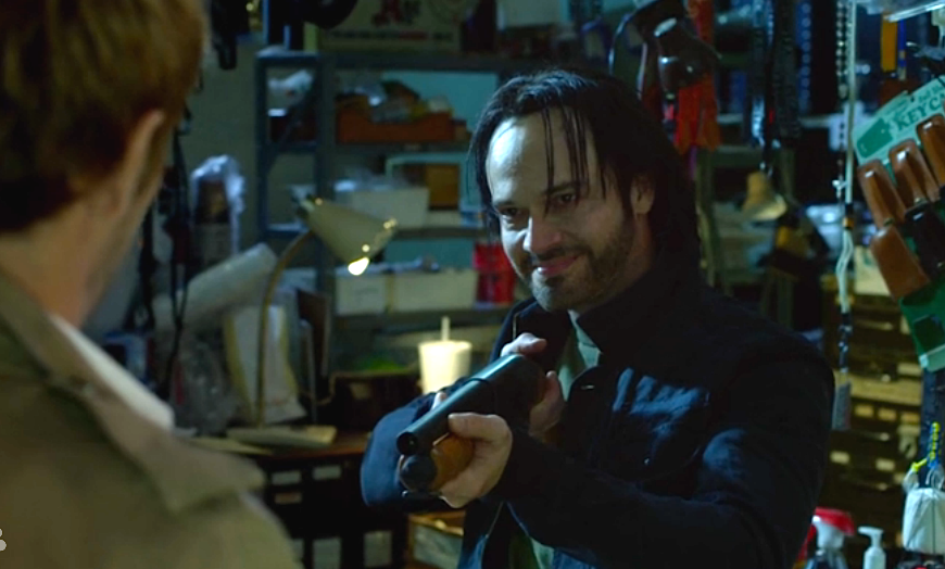 John, Chas and Zed find Fennel the medium (Roger Floyd) working in an Army surplus store. The Constan-team feels free to pocket an assortment of items they think might be useful on their way through the store. Like Renée, Fennel is not pleased to see John again. But Chas strong-arms Fennel into helping them anyway.