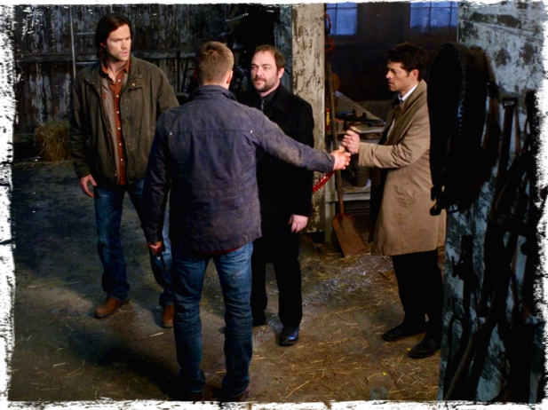 Dean gives blade to Castiel The Executioners Song Supernatural Published February 21, 2015 at 617 × 462 in Supernatural S10E14 Recap: The Executioner’s Song ← Previous Next → Dean gives the First Blade to Castiel, not Crowley Castiel (Misha Collins), Crowley (Mark Sheppard), Sam Winchester (Jared Padalecki), and Dean Winchester (Jensen Ackles) in Supernatural Season 10 Episode 14 “The Executioner’s Song”