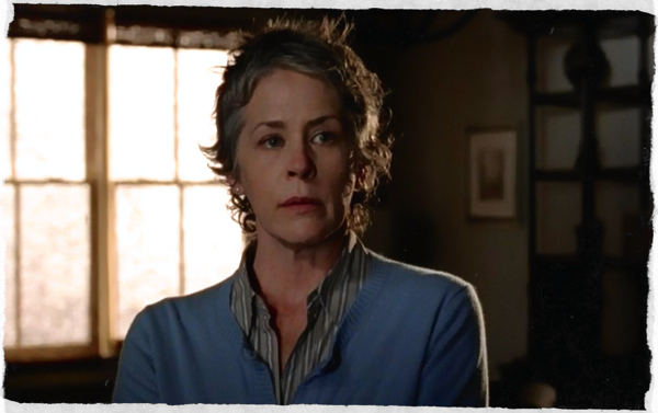 Will Rick kill Pete? The narrative of Jessie’s (Alexandra Breckenridge) abuse emerged in an interesting way, with Sam (Major Dodson) insisting on spending time with Carol (Melissa McBride). Perhaps Sam recognizes, consciously or not, that a badass like Carol might be able to protect him and his mom. Carol, as a survivor of domestic abuse, is quick to recognize the signs. While the scene between Carol and Sam in “Forget” was terrifying, the scenes between them in “Spend” are almost comical. As it becomes evident that Sam may have another agenda besides more cookies, Carol can’t help but become involved, despite her earlier, seemingly ineffective, efforts to scare off Sam.