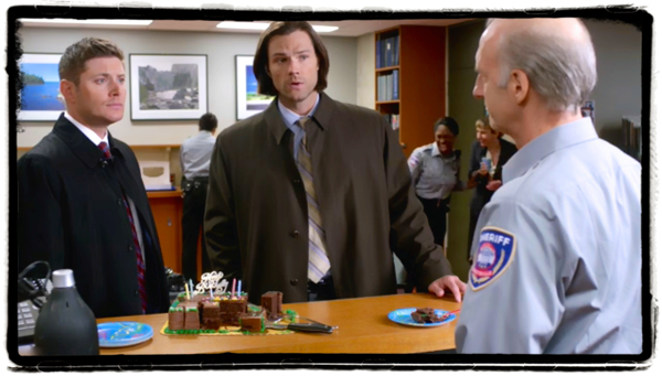 Sam Dean Sheriff office Supernatural The Things They Carried Published March 19, 2015 at 600 × 341 in Supernatural S10E15 Recap: The Things They Carried ← Previous Next → Dean can’t resist birthday cake Sam Winchester (Jared Padalecki) and Dean Winchester (Jensen Ackles) at Sheriff station in Supernatural Season 10 Episode 15 “The Things They Carried”