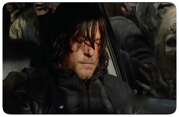 Daryl in car with walkers The Walking Dead Conquer Published April 1, 2015 at 600 × 391 in The Walking Dead S05E16 Recap: Conquer ← Previous Next → Daryl and Aaron trapped in car, surrounded by walkers Daryl Dixon (Norman Reedus) in car with walkers all around in The Walking Dead Season 5 episode 16 Conquer