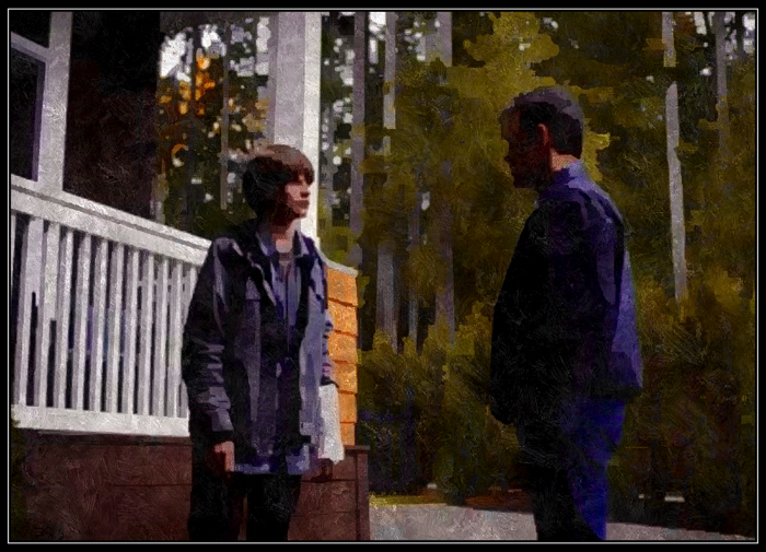 Kate is hiding in the driveway and takes Ethan into the woods to talk. The ever-suspicious and increasingly sulky Ben sees them through the window. Ben goes outside to follow the woman he despises and his dad.