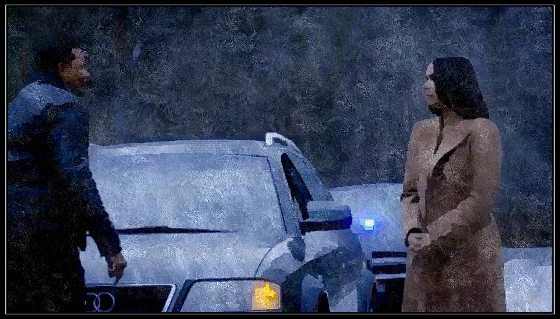 Burke’s wife Theresa and his son Ben have arrived in Boise, Idaho. They are at the Secret Service field headquarters, talking to someone who we don’t think is the mythical receptionist Marcy. Theresa has acquired her own particular set of skills and finds a trail leading them to the town of Wayward Pines. Sheriff Pope pulls them over on the road to Wayward Pines, and uses his own set of skills to sabotage their car.