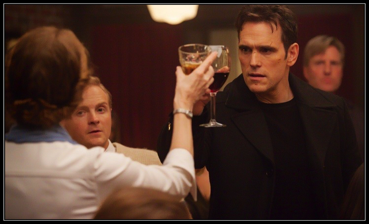 Receptionist Arlene is also at the restaurant, lamenting Sheriff Pope’s “retirement.” Kooky Nurse Pam has arrived and gives a toast celebrating the new sheriff, indicating she expects him to punish those who break the rules. In the back of the restaurant Kate Hewson sits with her husband, watching Pam’s behavior with surprise. Interrupting Pam, Ethan gives his own toast: “And I want everyone here tonight to know … that as long as I’m Sheriff of Wayward Pines, I will do everything in my power to ensure … that the evils of this town are brought to light … and that the true criminals … are brought to justice.” The whole toast thing didn’t seem to go as Nurse Pam had hoped.