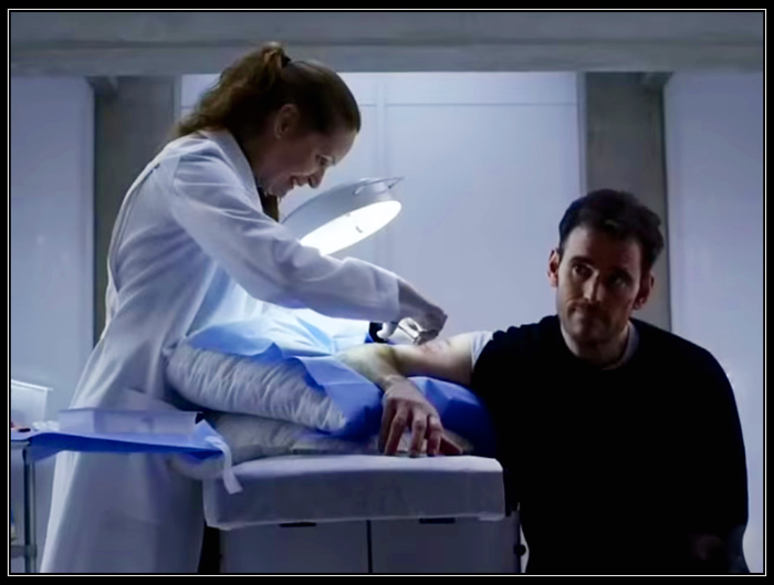 David is doing the villain exposition thing (we’re supposed to think he’s a villain, right?). He explains that people began to notice what they were doing not because of the funding, but because of all the disappearances. They arrive in the mountain ICU, where a cryogenically frozen victim is in the process of being revived. Ethan asks how many there are, and David looks up at him. Perhaps David has piqued Ethan’s interest by playing to his protective nature.