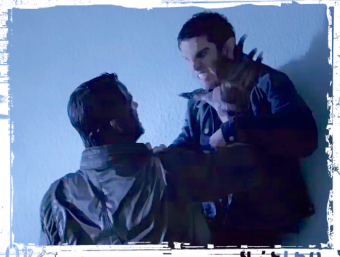 Deputy Parrish is sick and tired of being treated like a sophomore by senior Sheriff Stilinksi. After complaining about paperwork duty, the Sheriff sends Deputy Parrish to an abandoned house to investigate a noise complaint. Something is locked away behind a concrete wall and the deputy foolishly frees it. The creature that emerges from behind the wall is a werewolf with glowstick claws covered in black goo. We suspect this werewolf had a much more exciting summer than Scott did. Naturally, the glowstick werewolf wants to know where alpha werewolf Scott McCall can be found.