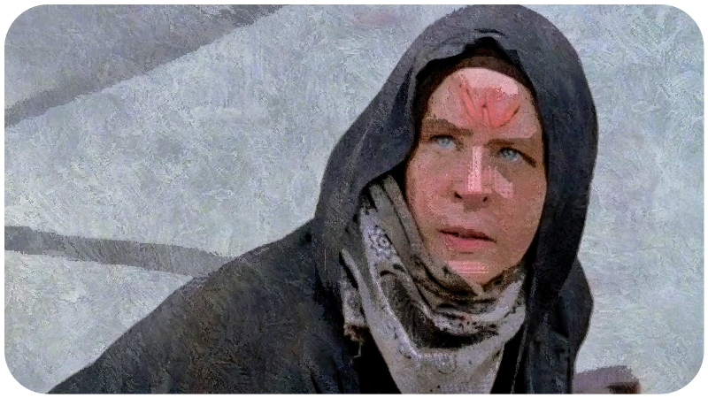 We finally learn more about Enid. Her parents were killed by walkers, leaving her alone in a dangerous world. As Enid hides from walkers she writes “JSS” in the dirt. She writes it again on the car window. As she eats a turtle raw (making fire without matches is not exactly easy) she uses the turtle innards to write “JSS” on the ground. Eventually, she finds herself outside the gates of Alexandria and hears laughter. She writes “JSS” on her hand, and enters Alexandria. It is only at the end of the episode that we learn what “JSS” stands for—Just Survive Somehow. And she does.