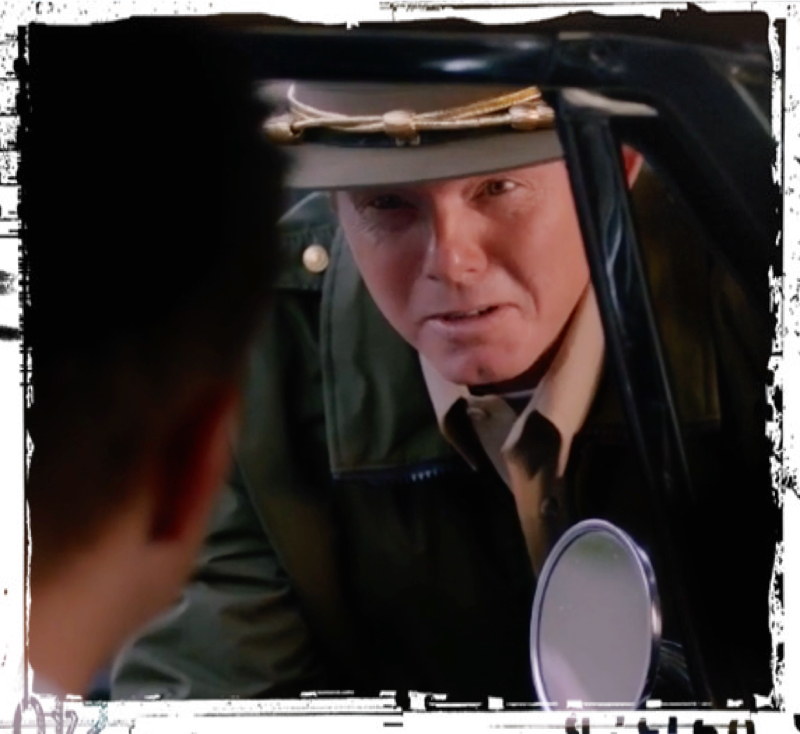 Dean has been attacked by the Deputy, who turns out to be the monster they’re hunting. Shooting the creature with silver bullets doesn’t seem to do the trick, so Dean decapitates him. The decapitated head is on the hood and not dead. The windshield wipers get the head off of the car and Dean puts the snarling head in the beer cooler. Dean takes a picture of the head (“Smile, asshat”), and emails it to Castiel for further research.