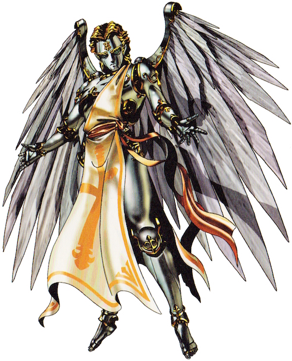 “The greatest and most mysterious of the angels. He has many names, such as the Voice of God and Angel of Contracts. In contrast to his duty to maintain the world, he is said to have a merciless side toward humanity.”