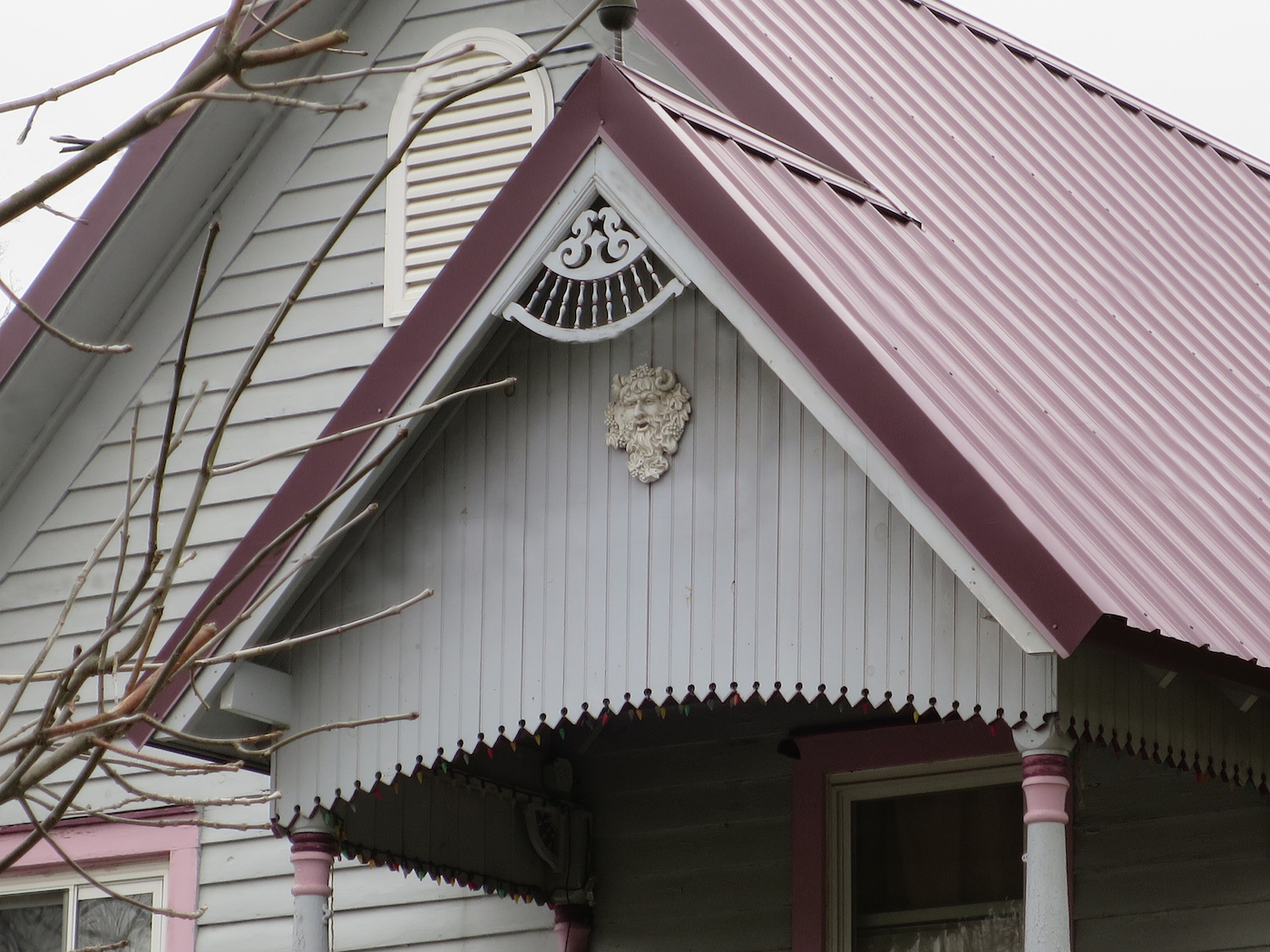 Lily dale Architecture ornate roof mask Published April 23, 2016 at 1400 × 1050 in Lily Dale Assembly: Architecture and Community-Building ← Previous Next →