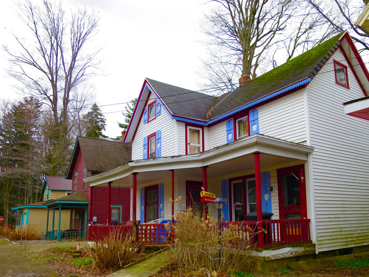 Lily Dale Architecture yellow red and white houses Published April 23, 2016 at 1400 × 1054 in Lily Dale Assembly: Architecture and Community-Building ← Previous Next → Color highlights the architectural interest in many Lily Dale homes