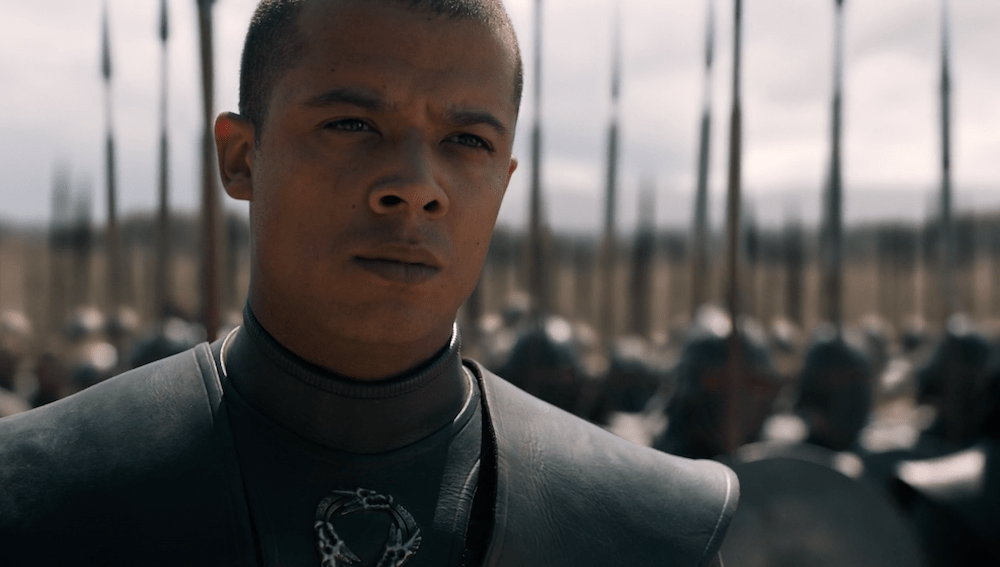 Greyworm gate Game of Thrones The Bells Published May 15, 2019 at 1000 × 567 in Game of Thrones Season 8 Episode 5 Photos: The Bells ← Previous Next → Greyworm sizes up the Golden Company