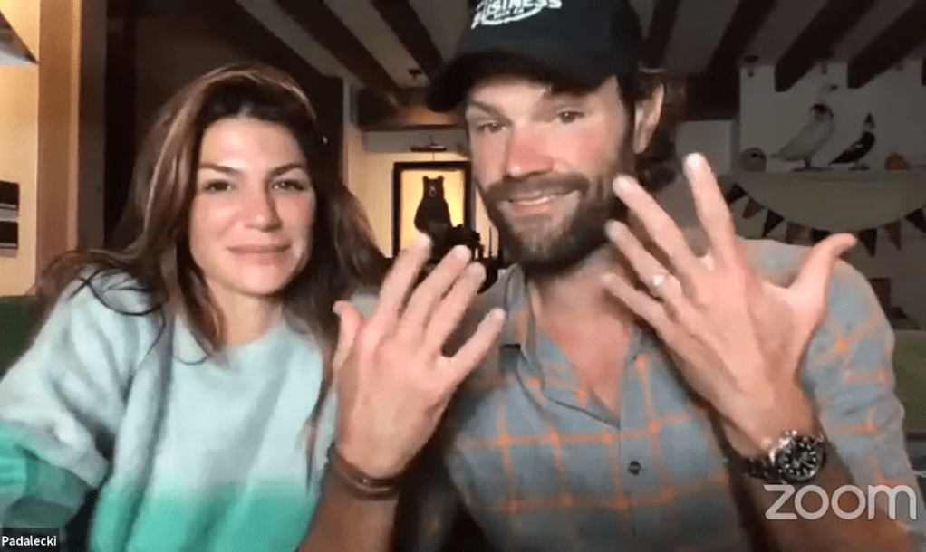 Along with Misha Collins, many of the Supernatural family showed up for the event. Jared (Sam) and Genevieve Padalecki (Ruby) were able to get into the zoom room early, while Jensen (Dean) and Danneel Ackles (Anael) arrived later, but in style. The Ackles filmed their zoom appearance from the back seat of Dean Winchester’s 1967 Impala referred to as “Baby.”