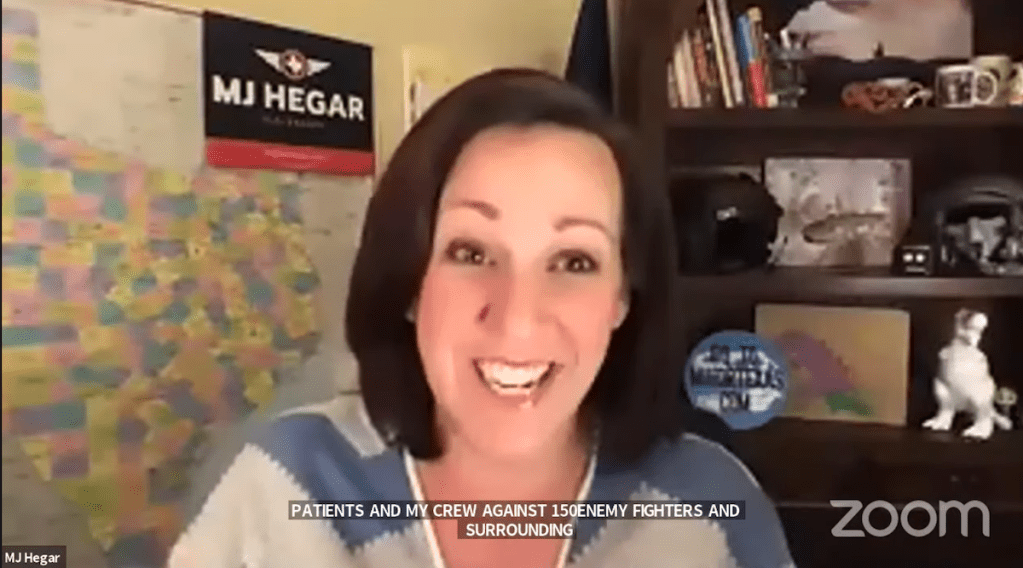 Hegar described being shot down in combat and being surrounded by enemy fighters, “And I gotta tell you, I’m channeling the Winchester boys.” She also shared the story of when Misha Collins first direct messaged her campaign. After she read his message, she dropped her phone and told her staff, “An angel of God just DM’d me on twitter.”
